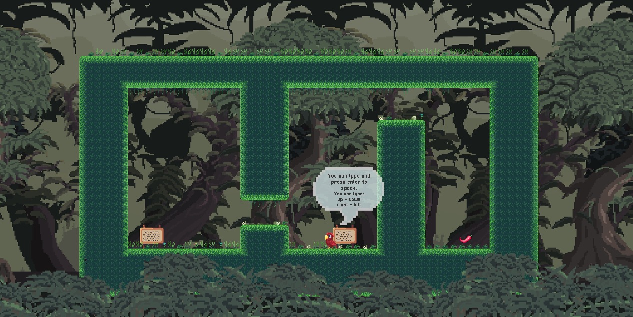 Chirpy is a game where you play as an parrot who can manifest his "speech bubbles" into actual Bubbles! Use Arrow Keys to move, you can type words such as "up, left, down, right, up right, down left etc." Happy Chirpin!
